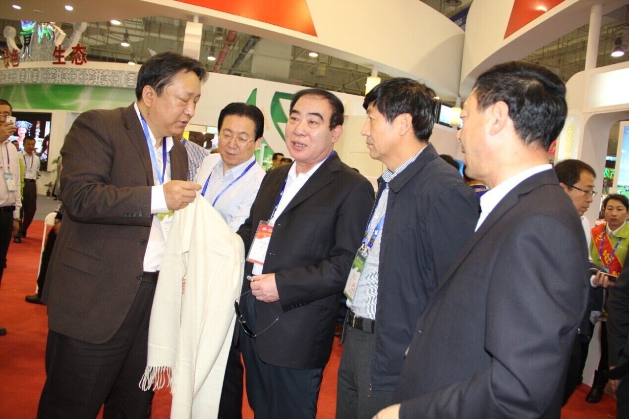 農(nóng)牧業(yè)廳郭健廳長參觀并了解羊絨展區(qū)展品