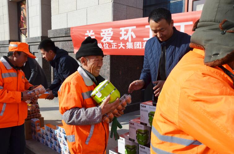 為了表達(dá)對他們的感謝,正大集團(tuán)內(nèi)蒙古區(qū)于328日舉辦了“關(guān)愛環(huán)衛(wèi)工 共建魅力城”活動,為呼和浩特市的100名城市環(huán)衛(wèi)工送上保溫飯盒、保溫杯、手套、防霧霾口罩以及正大雞蛋等慰問品?;顒雍粲醮蠹蚁颦h(huán)衛(wèi)工人學(xué)習(xí),學(xué)習(xí)他們默默奉獻(xiàn)的精神,多多體諒環(huán)衛(wèi)工人的辛苦,自覺收集生活垃圾,投放到指定地點(diǎn),努力創(chuàng)造清潔美麗的生活環(huán)境,共同為提升城市對外形象和品位做出自己的貢獻(xiàn)。