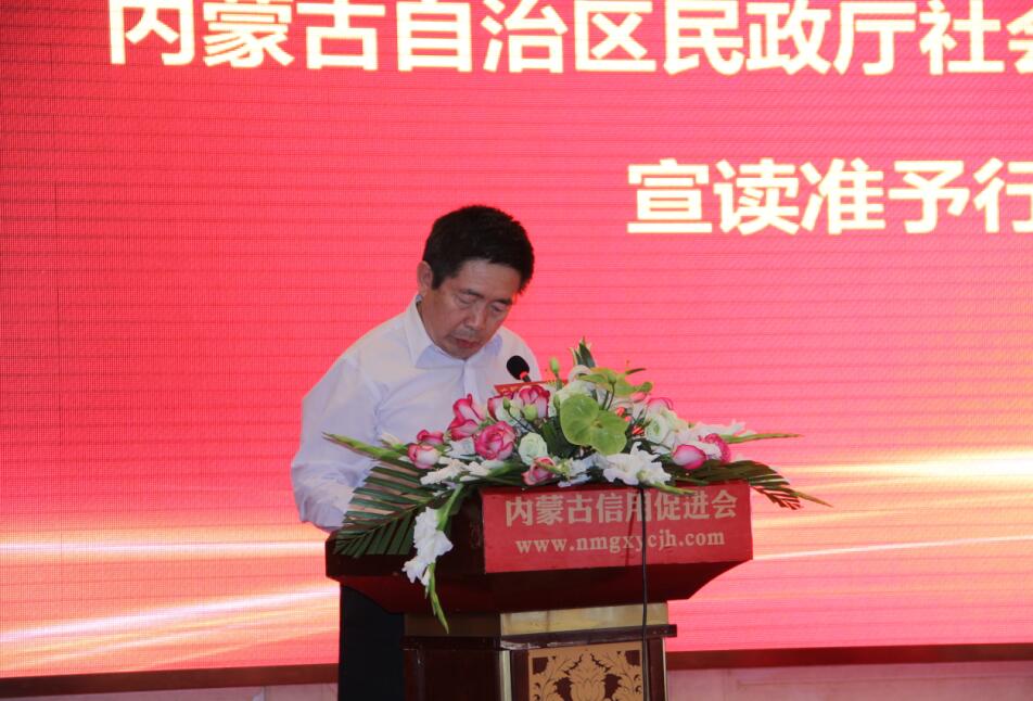 內(nèi)蒙古自治區(qū)民政廳社會組織管理局局長韓少俊宣讀準予行政許可決定書
