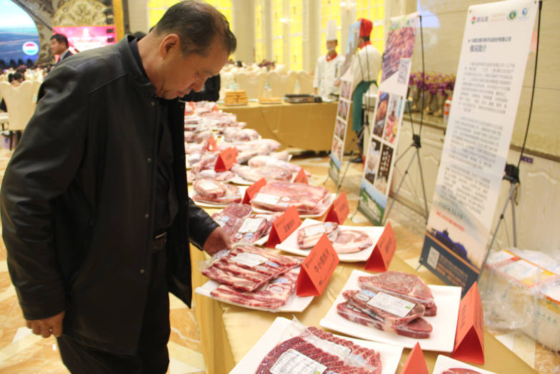 活動開始前,現(xiàn)場看到展臺上匯集了琳瑯滿目的各種錫盟牛羊肉產(chǎn)品,羊排、牛排、后腱、花腱切片、眼肉牛扒以及各種牛羊肉食品,引得眾多現(xiàn)場嘉賓駐足咨詢了解產(chǎn)品。