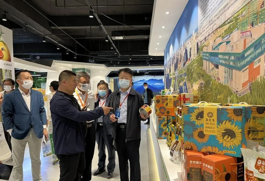自治區(qū)農牧廳市場與對外合作處處長侯雁冰參觀展廳