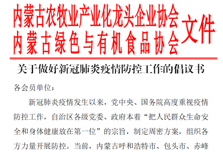 標題:眾志成城,抗擊疫情—內(nèi)蒙古農(nóng)牧業(yè)產(chǎn)業(yè)化龍頭企業(yè)協(xié)會在行動