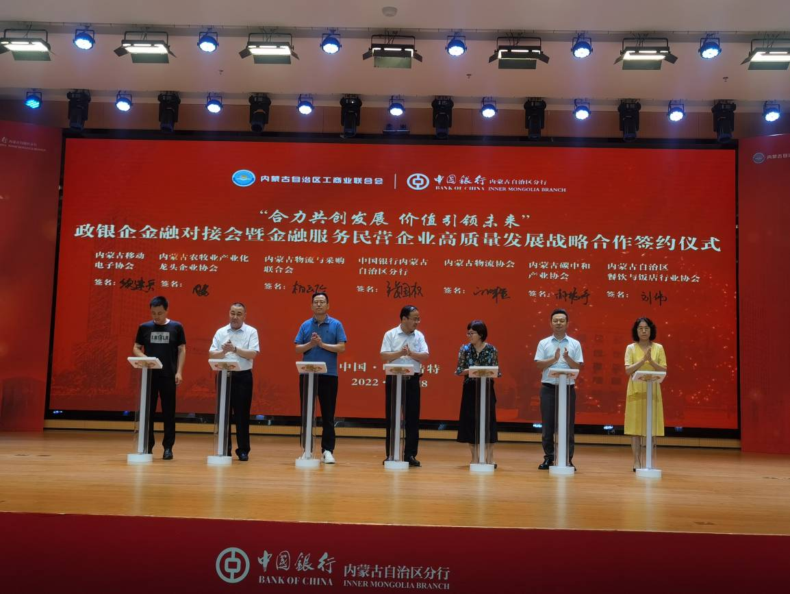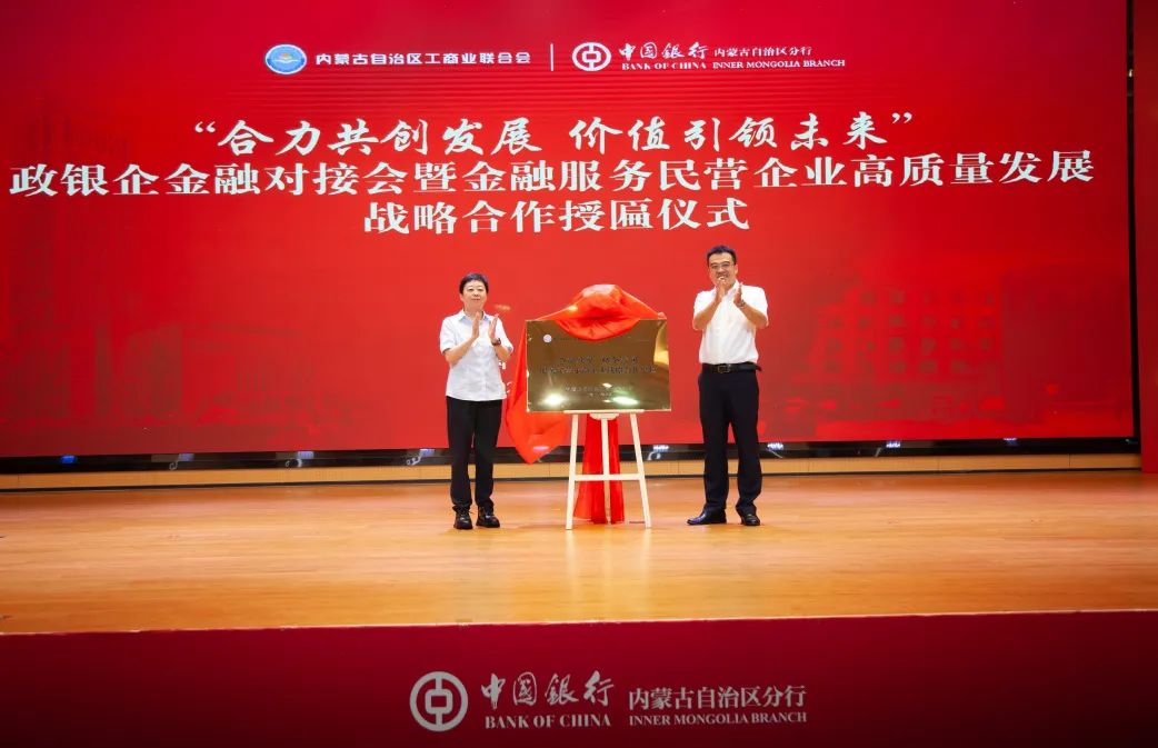 在與會人員的共同見證下,中國銀行內蒙古自治區(qū)分行與自治區(qū)工商聯金融服務民營企業(yè)高質量發(fā)展戰(zhàn)略合作正式啟航。