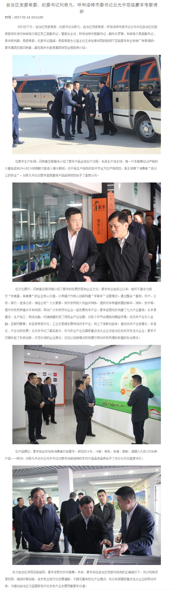 自治區(qū)黨委常委、紀(jì)委書記劉奇凡,呼和浩特市委書記云光中蒞臨蒙羊考察調(diào)研