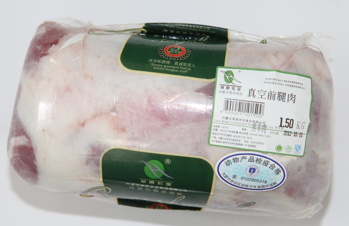 “草原宏寶”牌羊肉系列產(chǎn)品,從牧場養(yǎng)殖、屠宰分割到儲運物流、商品貿(mào)易全產(chǎn)業(yè)鏈、全過程參照國家《良好農(nóng)業(yè)規(guī)范》及相關(guān)工廠、物流審核標(biāo)準(zhǔn)的要求實施可追溯控制生產(chǎn),確保安全無污染。所生產(chǎn)的原料全部選用牧場的優(yōu)質(zhì)羔羊,采用伊斯蘭教屠宰方式進行吊宰,經(jīng)冷卻排酸、精細(xì)分割修選加工而成,被國家農(nóng)業(yè)部農(nóng)產(chǎn)品質(zhì)量安全中心認(rèn)證為“無公害食品”。