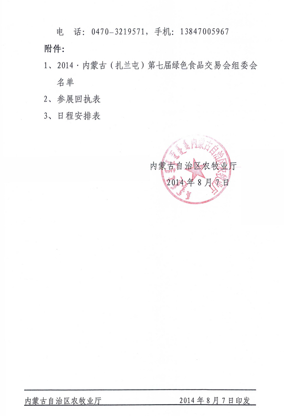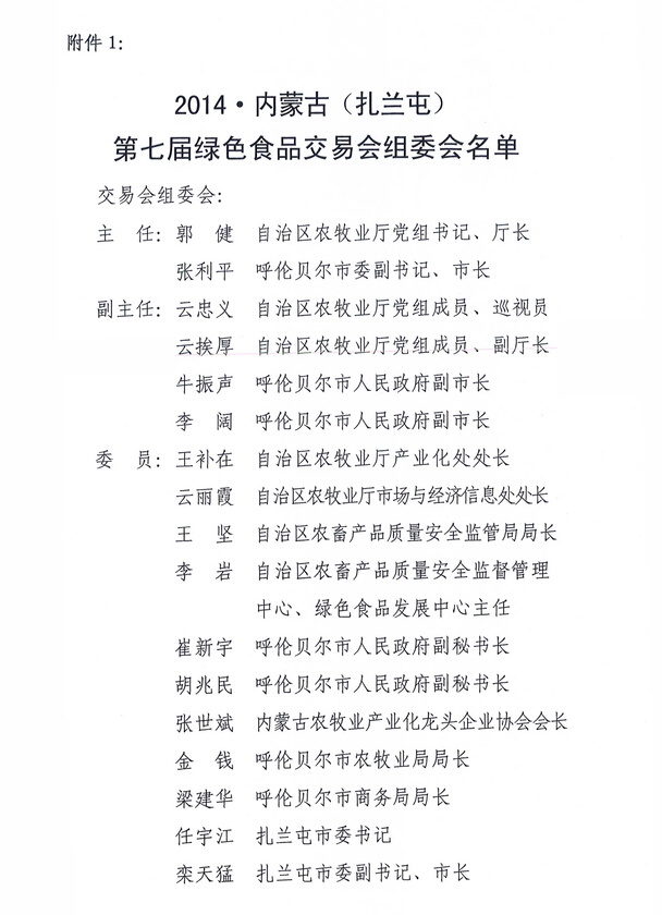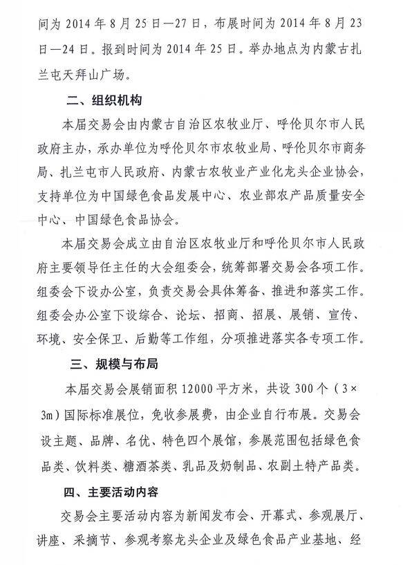 關(guān)于舉辦2014內(nèi)蒙古(扎蘭屯)第七屆綠色食品交易會的通知