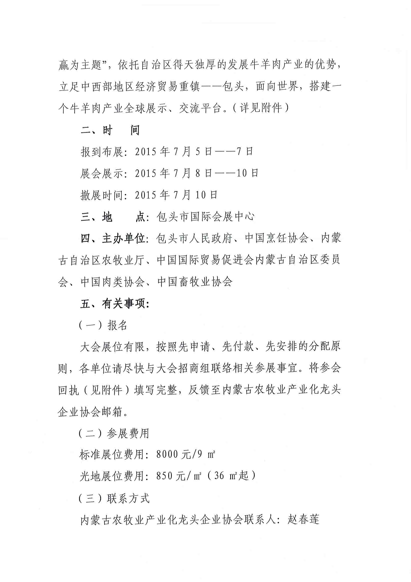 關(guān)于組織會員企業(yè)參加第二屆中國·包頭(國際)牛羊肉產(chǎn)業(yè)大會的通知