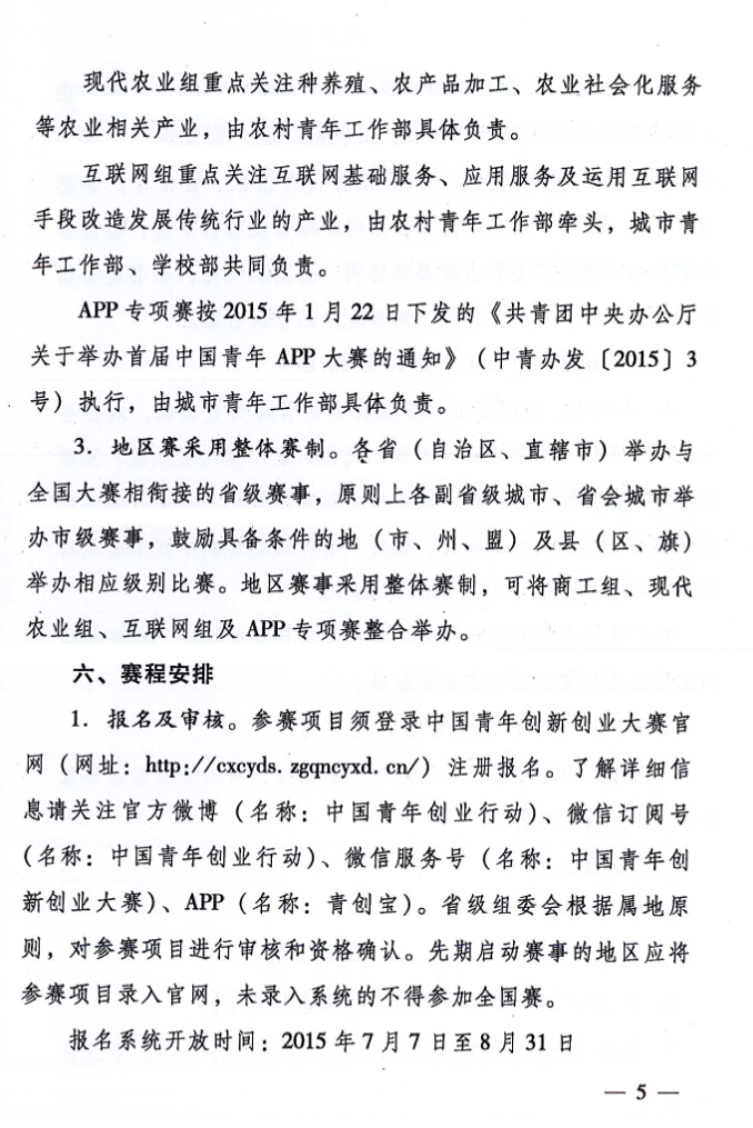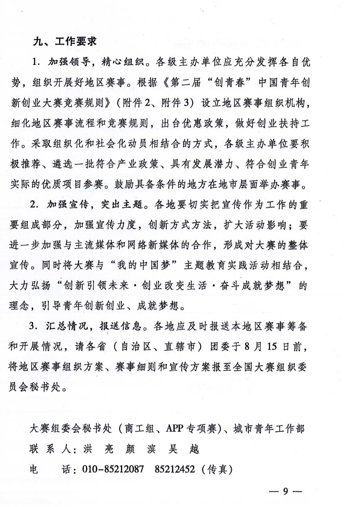 關于舉辦第二屆“創(chuàng)青春”中國青年創(chuàng)新創(chuàng)業(yè)大賽的通知