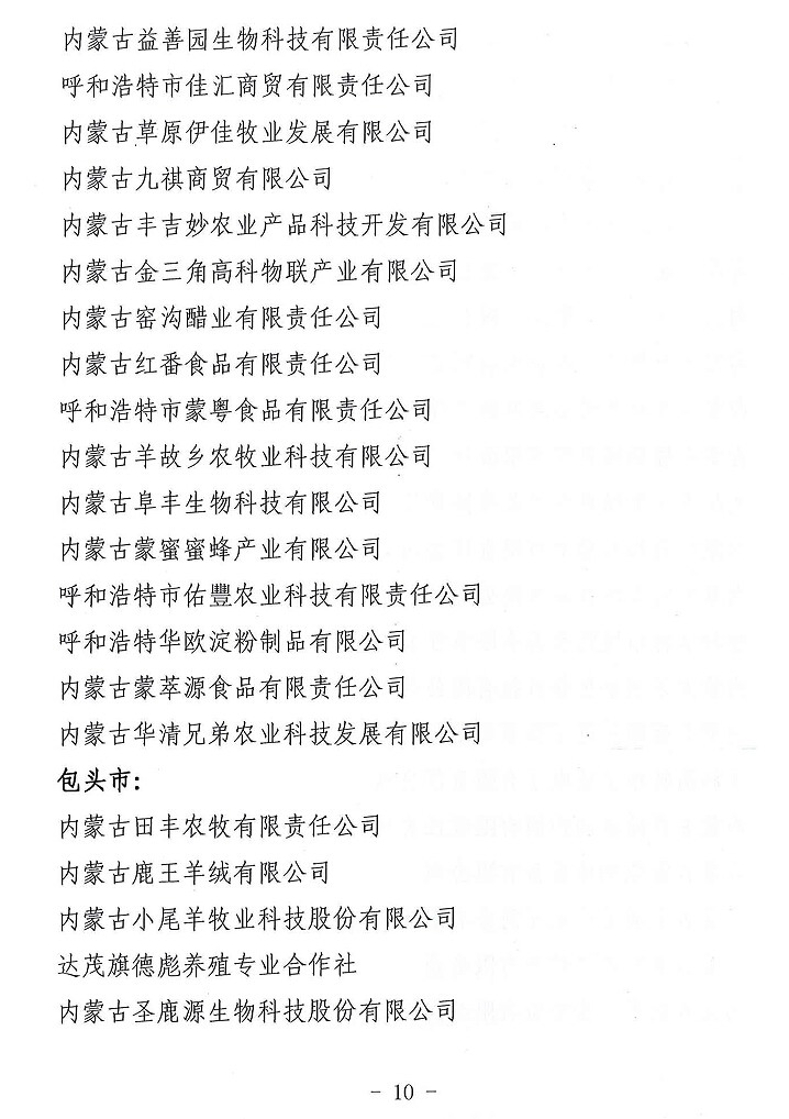 10  內(nèi)蒙古農(nóng)牧業(yè)產(chǎn)業(yè)化龍頭企業(yè)協(xié)會關(guān)...