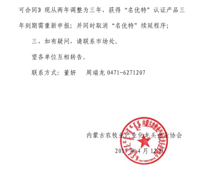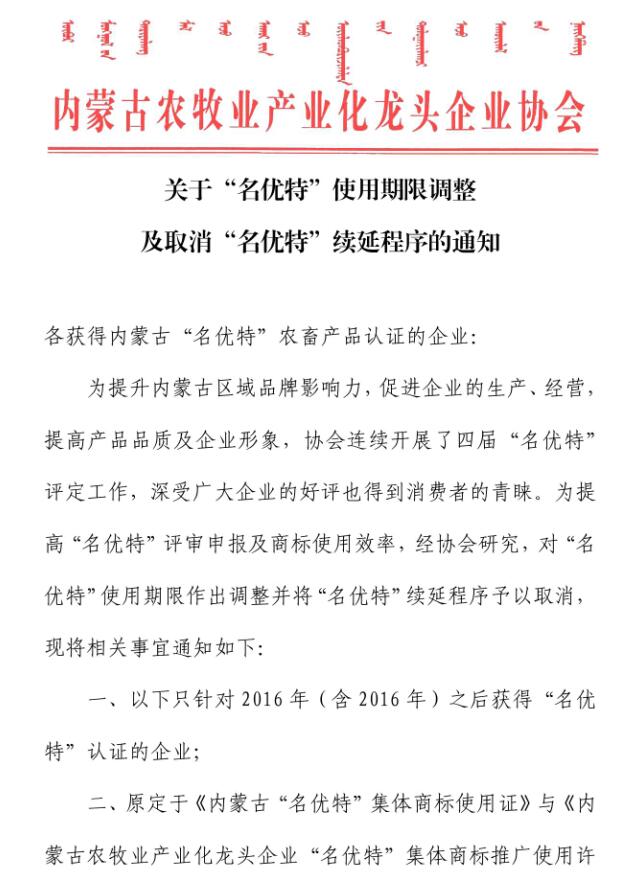 關于“名優(yōu)特”使用期限調整及取消“名優(yōu)特”續(xù)延程序的通知