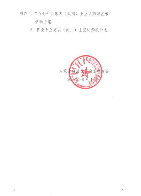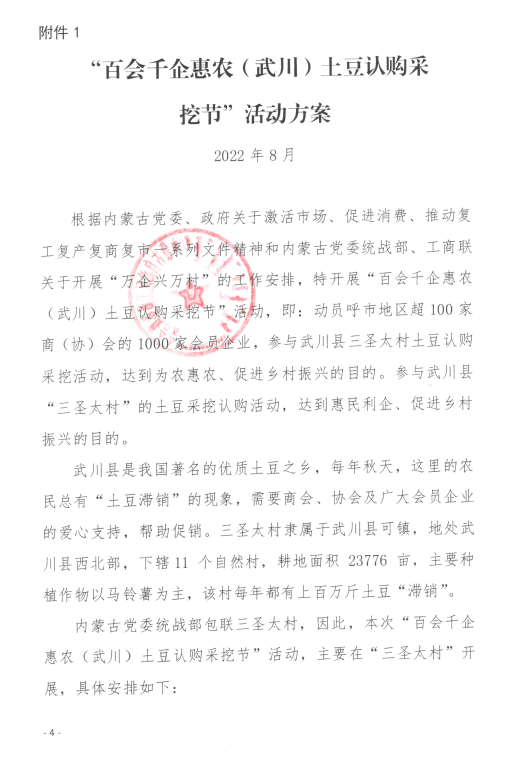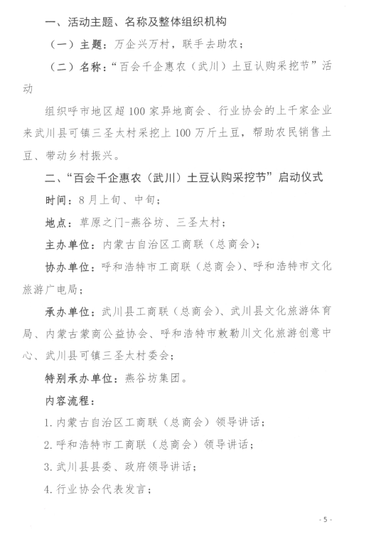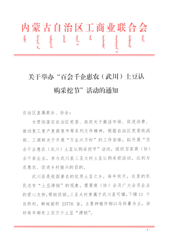 關(guān)于舉辦“百會(huì)千企惠農(nóng)(武川)土豆認(rèn)購采挖節(jié)”活動(dòng)的通知