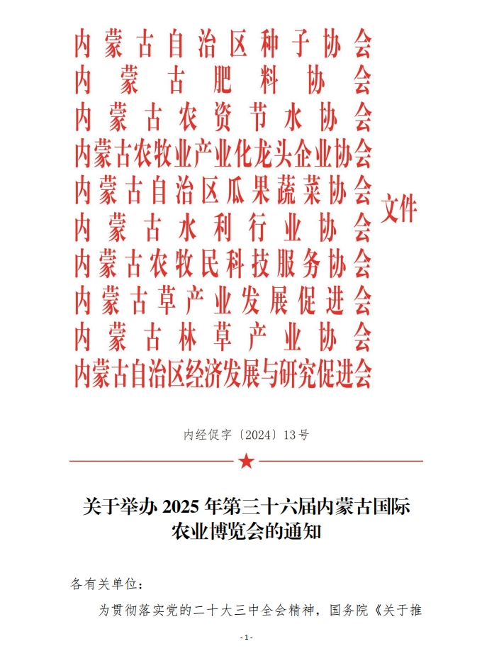 關于舉辦2025年第三十六屆內(nèi)蒙古國際農(nóng)業(yè)博覽會的通知