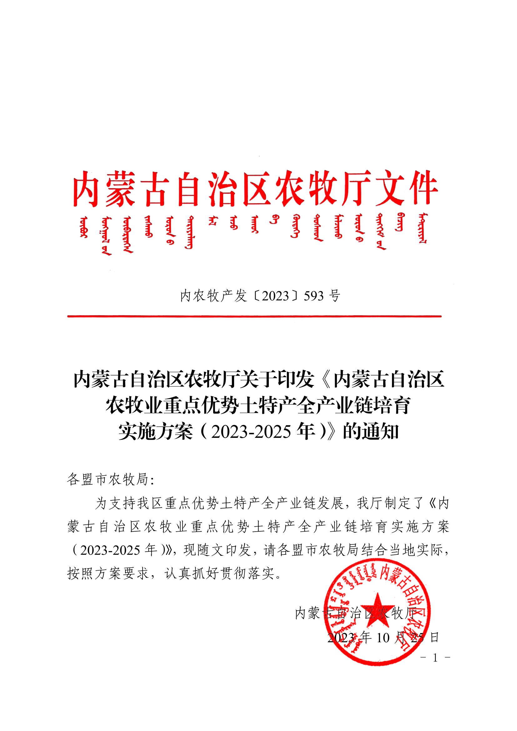 內蒙古自治區(qū)農牧業(yè)重點優(yōu)勢土特產全產業(yè)鏈培育實施方案(2023-2025年)