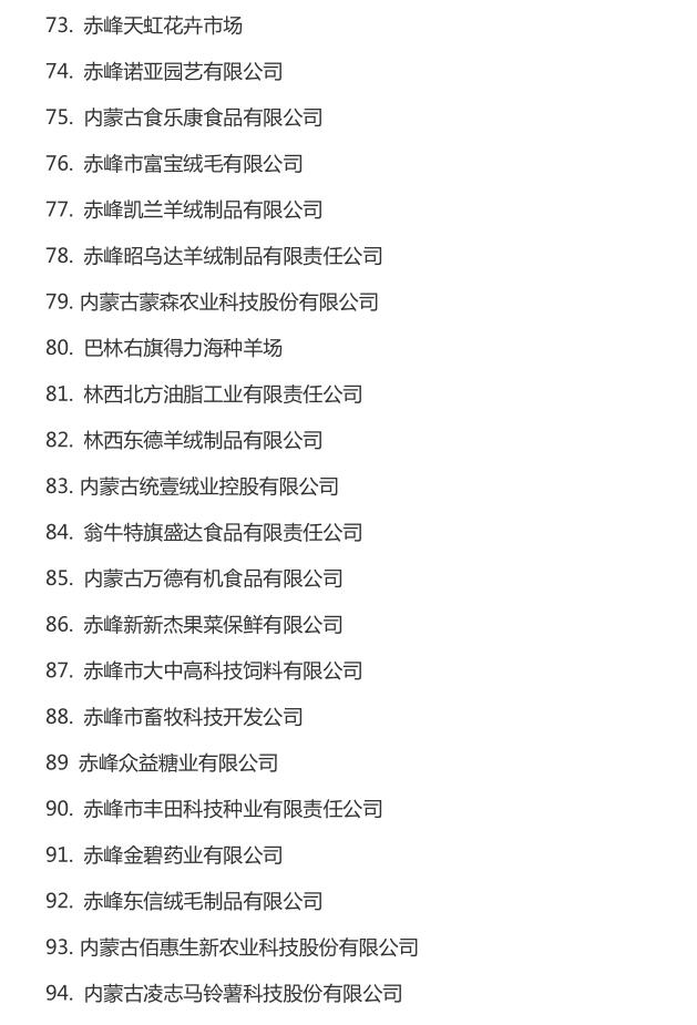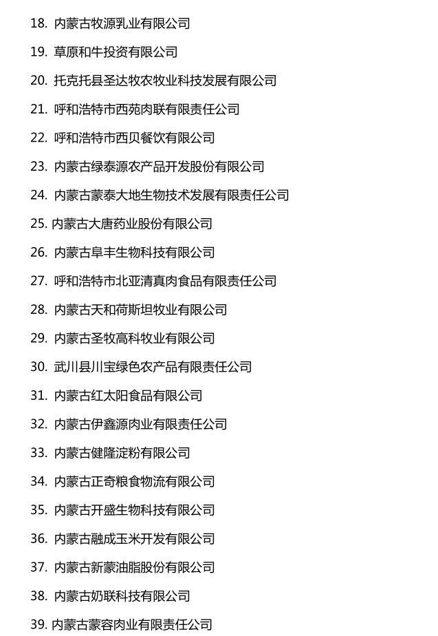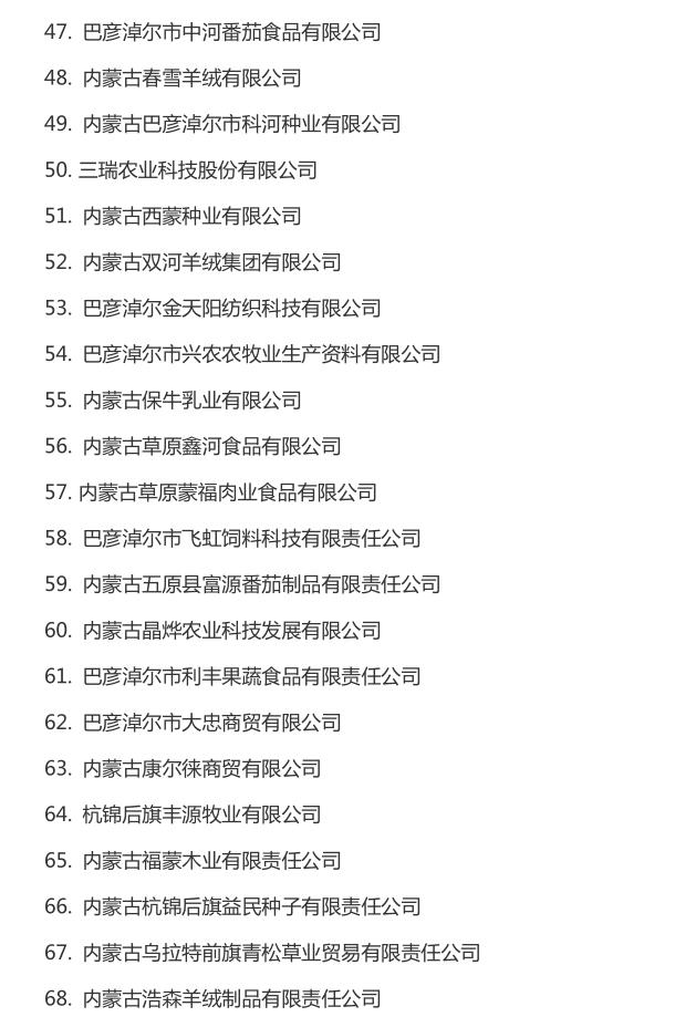 企業(yè)名稱:截止2016年末自治區(qū)級農牧業(yè)產業(yè)化 重點龍頭企業(yè)名單​