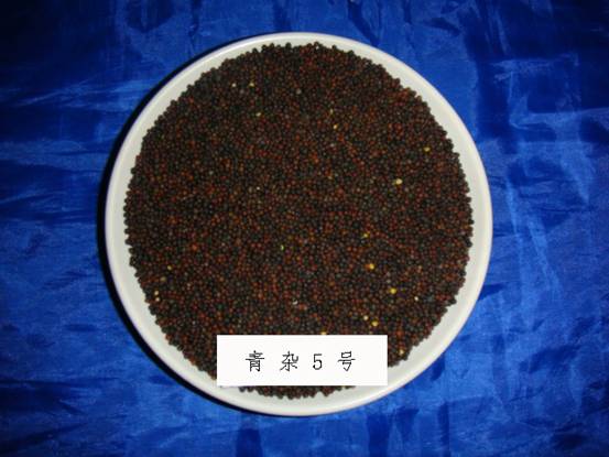 青雜5號品種為甘藍(lán)型春性質(zhì)不育三系雜交種。全生育期134天左右,與對照青雜1號相當(dāng)。幼苗半直立,葉色深綠,有裂葉23對,葉緣波狀,臘粉少,無刺毛?;ò挈S色,花冠橢圓形,花瓣側(cè)疊。株高171厘米左右,分枝部位62厘米左右,勻生分枝。平均單株有效角果數(shù)221.2個(gè),每角粒數(shù)25.7粒,千粒重3.9。