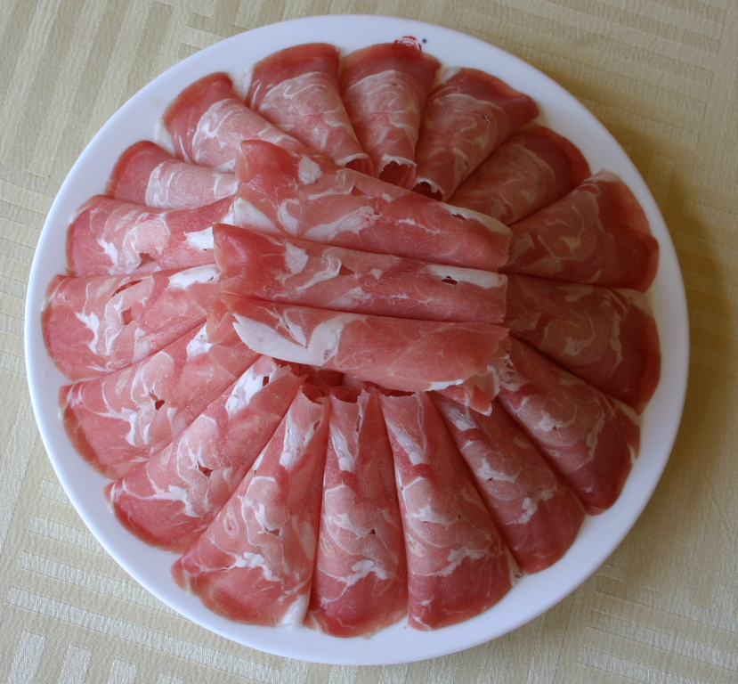 六、   尾坯:選用原料:去掉云皮、血線之后的整羊尾油,經(jīng)過特殊工藝之后,碼制而成。其特點(diǎn)是切片薄如紙、勻如晶,口感不膻不膩。
