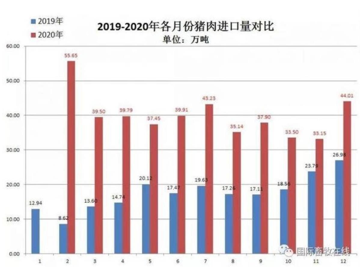備注:20202月份數(shù)值為1-2月累計數(shù)據,圖表來源于國際畜牧在線)
