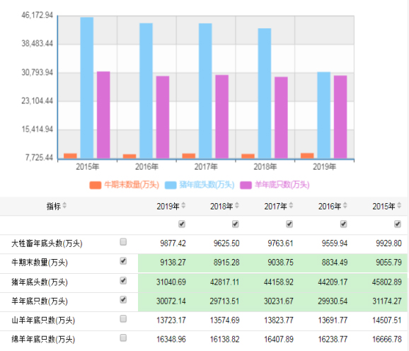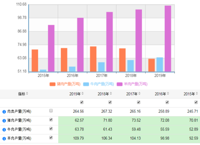2020年前三季度內蒙古經濟運行情況新聞發(fā)布會上新聞發(fā)言人夏榮華提到畜牧業(yè)生產逐步恢復。豬牛羊禽四肉產量同比下降2.3%,降幅較上半年收窄2.3個百分點。其中,豬肉產量45.4萬噸,下降2.6%,降幅較上半年收窄6.7個百分點;牛肉產量38.2萬噸,下降2.0%,降幅較上半年擴大0.4個百分點;羊肉產量71.0萬噸,下降2.4%,降幅與上半年持平。禽蛋產量35.1萬噸,增長4.2%。
