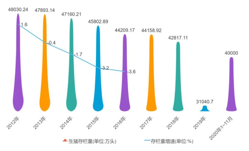 2020年,隨著全國規(guī)模豬場、散養(yǎng)戶的增加,新增產能陸續(xù)釋放,截至11月末,全國能繁母豬存欄已連續(xù)14個月增長,生豬存欄已連續(xù)10個月增長。11月末全國能繁母豬存欄超過4100萬頭、生豬存欄超過4億頭,生豬產能已恢復到2017年底的90%以上。11月,規(guī)模豬場新生仔豬超過3100萬頭,比年初增長94.1%。
